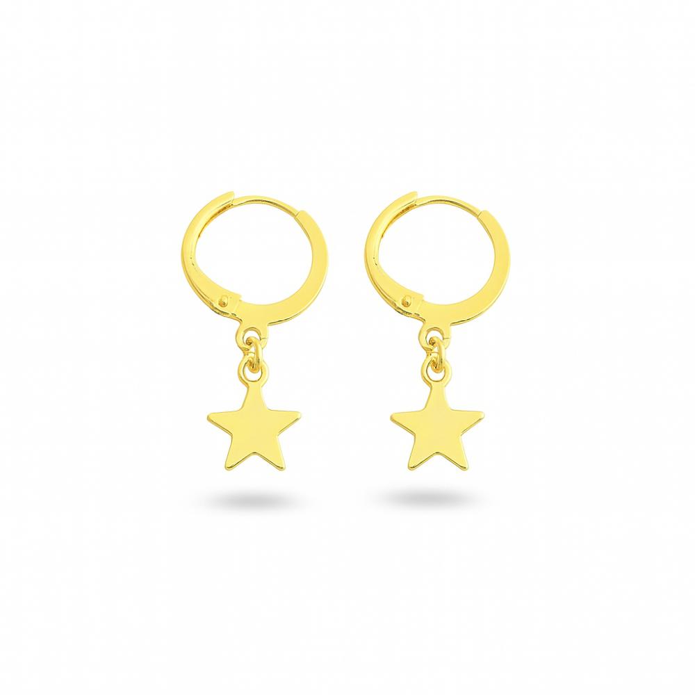 تألقي مع هذه الأقراط الدائرية باللون الذهبي والمزينة بتعليقات على شكل نجوم متدلية. خفيفة وأنيقة، تضيف لمسة مرحة وجذابة إلى إطلالتك، مما يجعلها مثالية للاستخدام اليومي والمناسبات الخاصة.