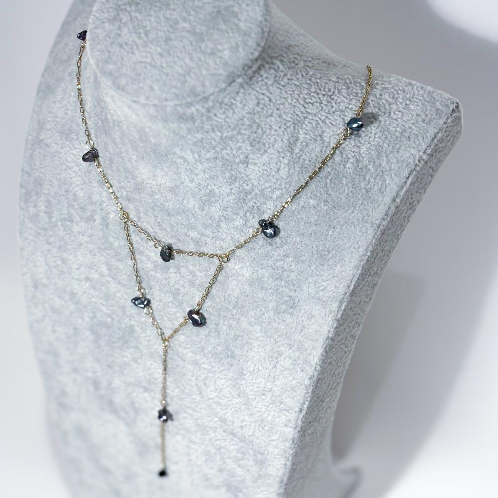 The Mouj collection draws its name from the Arabic word for “waves”, capturing the gentle rhythm and flowing elegance of the sea. Each necklace is crafted with delicate chains and crystals, stones, pearls, faceted beads that shimmer like sunlight on water. The layered design reflects harmony and movement, making it perfect for those who seek subtle sophistication and poetic charm. Available in soft pastels and classic tones, Mouj is an ode to serenity and femininity.