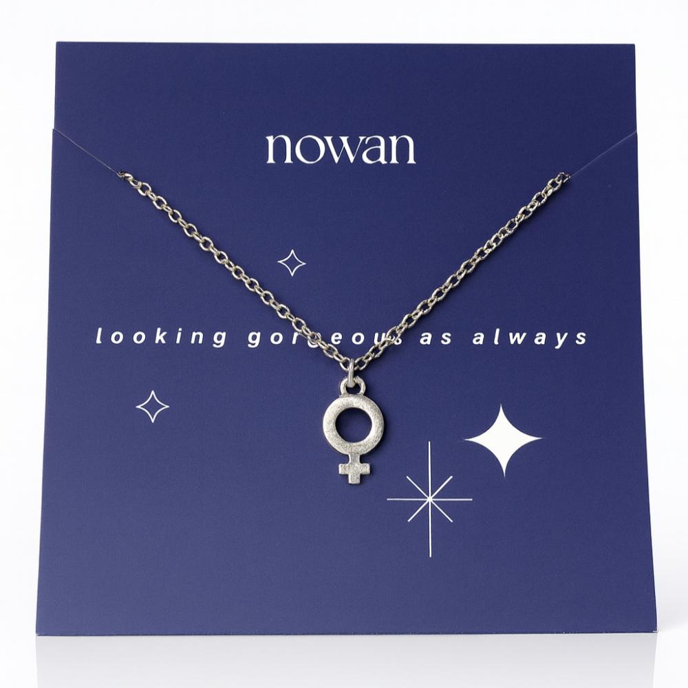 Celebrate strength, beauty, and empowerment with the Nowan Feminist Symbol Pendant Necklace. Featuring the iconic female symbol in a sleek metallic finish, this necklace is more than an accessory—it’s a statement. The minimalist design pairs effortlessly with any style, making it perfect for daily wear or as a meaningful gift to honor women’s power and resilience.