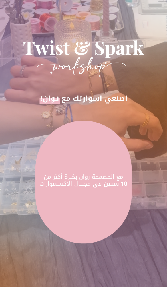 ورشة تفاعلية ممتعة مقدّمة من روان – صاحبة براند nowan بخبرة تتجاوز 10 سنوات في عالم الإكسسوارات اليدوية.