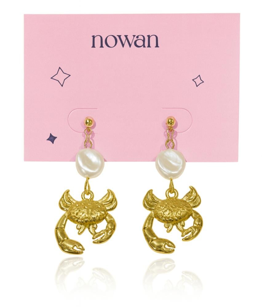 Make a striking statement with these crab-inspired drop earrings. Featuring lustrous pearl-like studs paired with detailed golden crab charms, this playful yet chic design captures the adventurous spirit of the sea. Perfect for ocean lovers and anyone who wants to add a fun, bold twist to their summer or evening look.