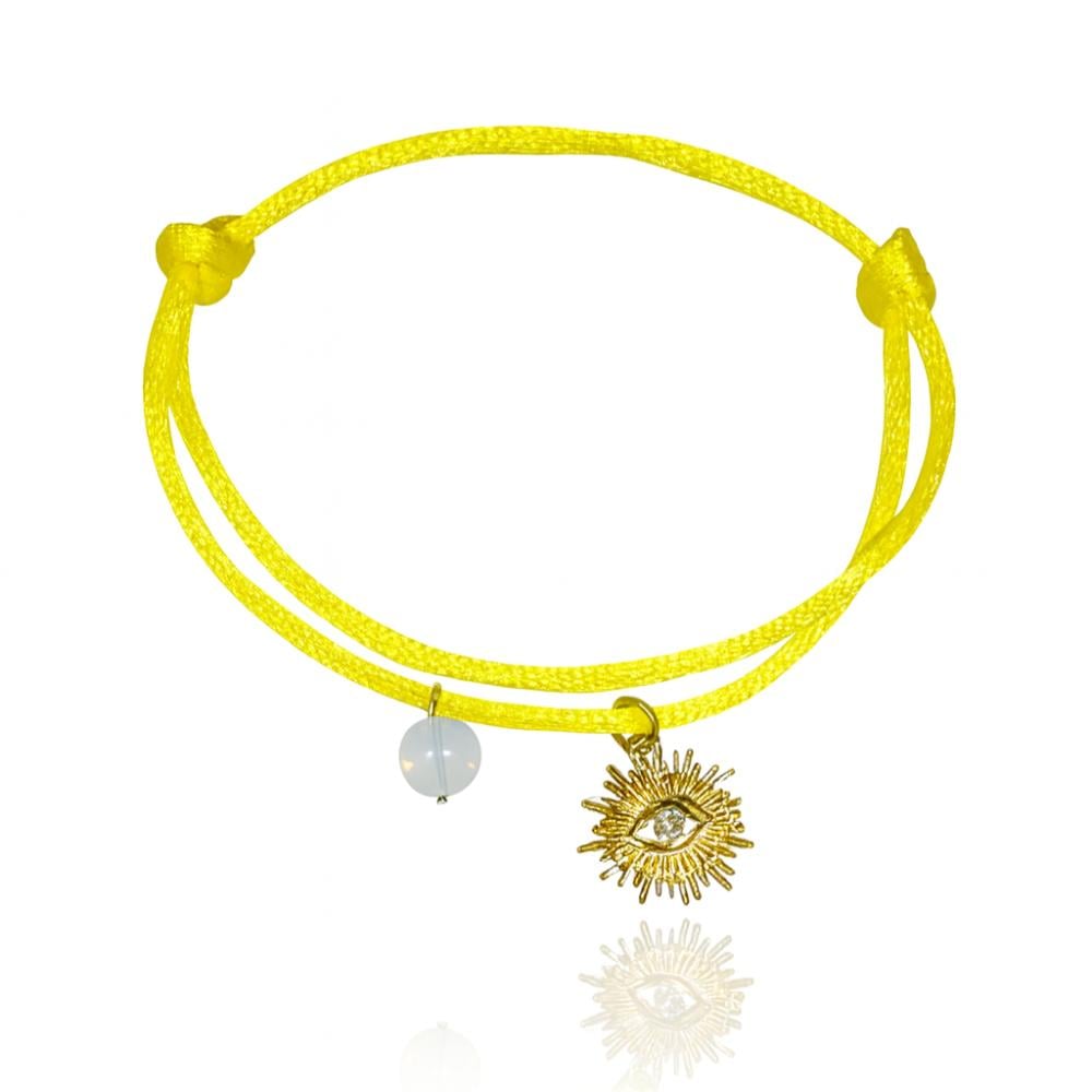 Bright and bold, this yellow cord bracelet brings instant positivity to your style. Adorned with a radiant golden sun-eye charm and a delicate bead accent, it symbolizes light, energy, and protection. Adjustable and lightweight, it’s perfect for stacking or wearing solo for a vibrant statement.