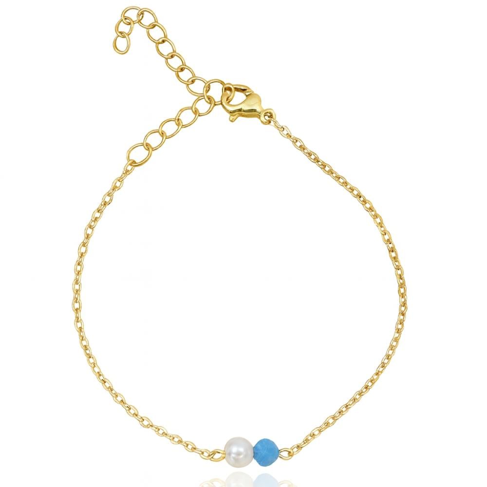 - اسوارة ذهبيه مع لولو وكرستال | Pearl and blue crystal bracelet