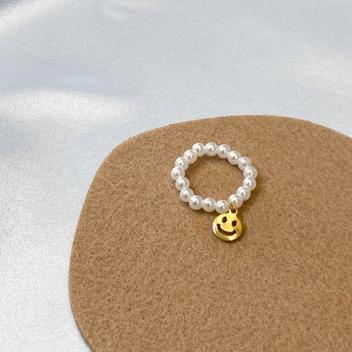 كولكشن سمايلي | خاتم اللولو مع تشارم سمايلي الذهبي | Smiley collection | Pearl with smiley charm ring