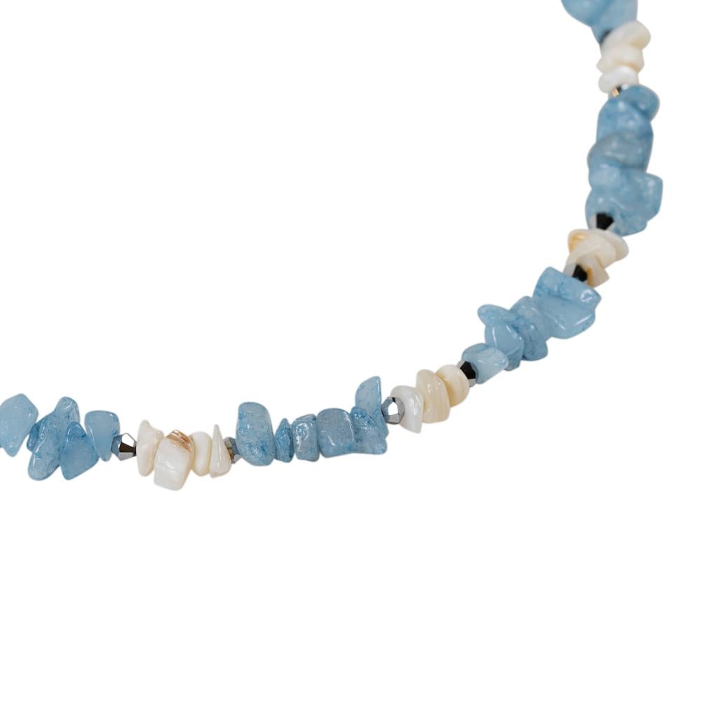 النوع: حجر زمرد أزرق طبيعي و خرز.