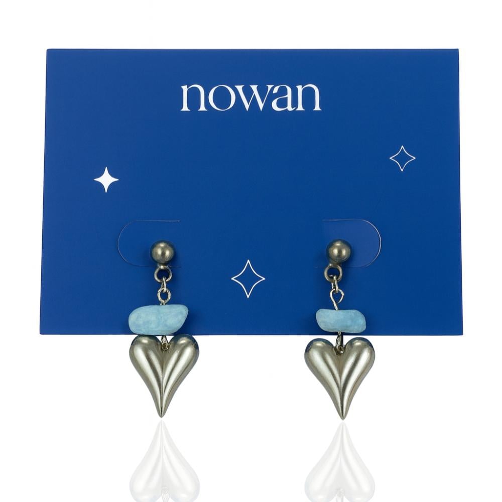 أقراط مع تعليقة القلب مع حجر طبيعي أزرق