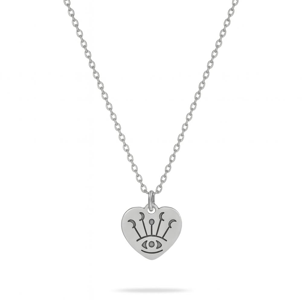 عقد بسلسلة رفيعة بلون فضي يحمل تعليقة أنيقة على شكل تاج فوق قلب، في تصميم يرمز إلى النعمة والقوة والملكية. يتميز العقد بلمعة خفيفة وتصميم بسيط يجعله مناسبًا للارتداء اليومي أو كهدية مميزة. خفيف وسهل التنسيق، يضفي لمسة ملكية ناعمة على أي إطلالة.
